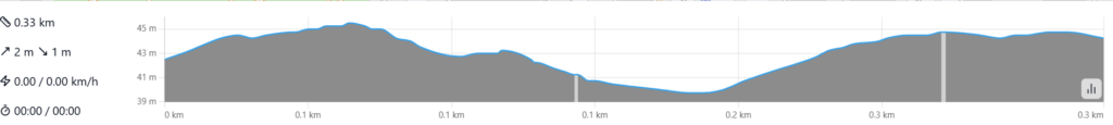 Uscendo dall’ascensore, si gira immediatamente a sinistra. Si percorrono circa tre metri su pavimentazione LOGES, poi il terreno diventa irregolare e leggermente sconnesso. Si gira a destra e si percorrono circa cinque metri, quindi si svolta a sinistra e si prosegue per altri cinque metri fino a raggiungere un attraversamento pedonale.