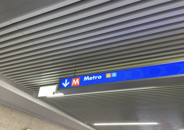 Da qui, per raggiungere i binari della Metro A, si procede dritti per circa 200 metri, poi si gira a destra. Dopo circa 60 metri si trova una mappa tattile. Da questo punto si prosegue in diagonale verso sinistra per 50 metri, fino a raggiungere una rampa che collega ai piani inferiori.