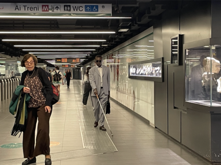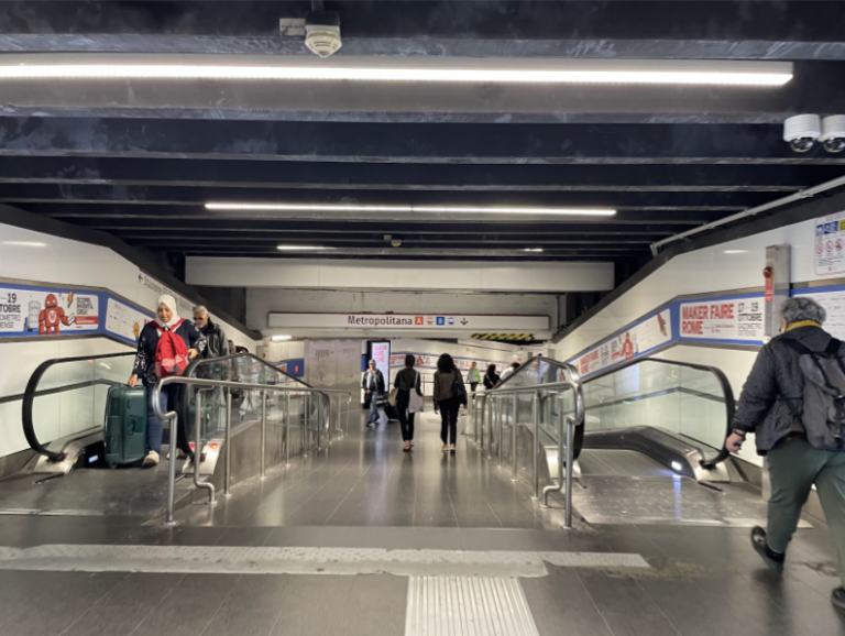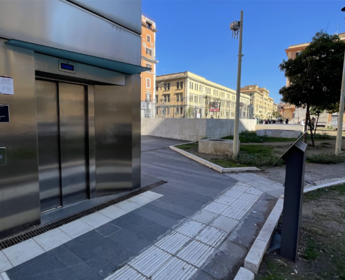 Il percorso parte dall’ingresso della Stazione Termini sul lato di via Marsala, accanto alla fermata dei taxi. Da questo punto è possibile accedere alla linea A della metropolitana in modo completamente accessibile.